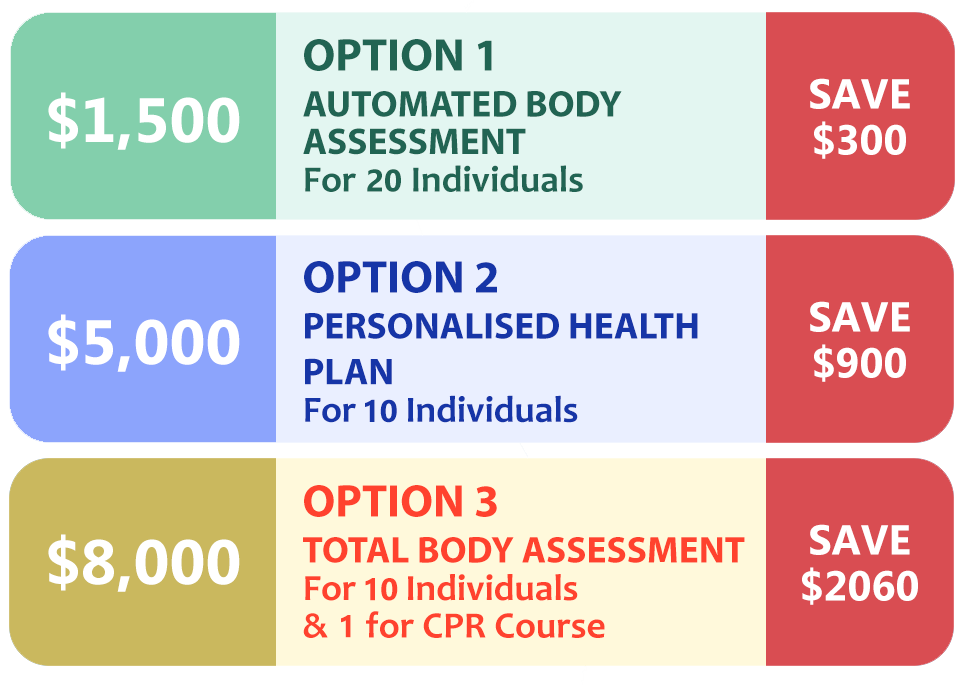 With your support for this worthy cause, we are offering 3 Health Packages Options for your company to choose from: